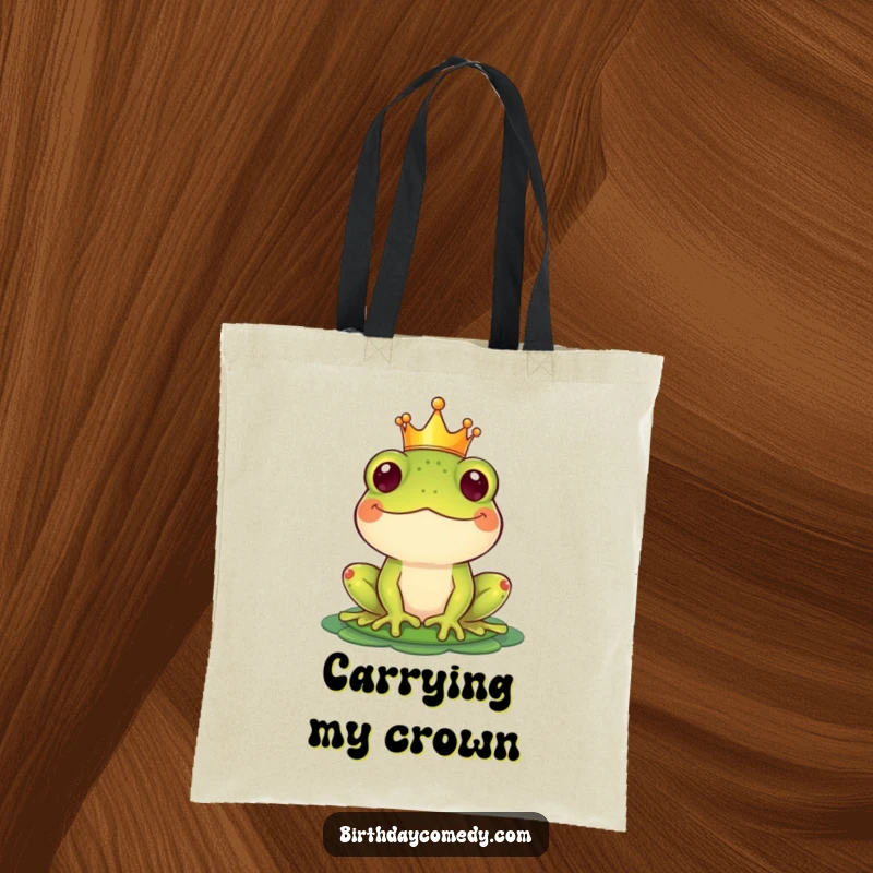 Funny Crown Frog Tote Bag: Stylish Royal Amphibian Accessory for Everyday Laughs